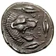 | Reversbeschreibung | Head of roaring lion facing right with four barley grains around it. Inscription split in four, around the lion´s head. |