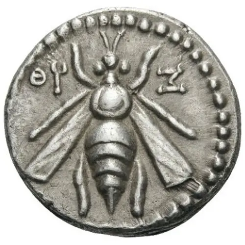 Aversbeschreibung Bee with straight wings; to left, date ΘϘ (=99). To right, retrograde Σ