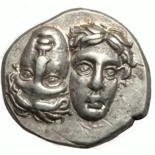 | Description du revers | Sea-eagle left, grasping dolphin with talons No letters or monograms |