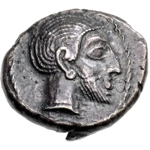 | Obverse description | Bearded male head right, wearing oriental headdress, within guilloche-pattern border. |