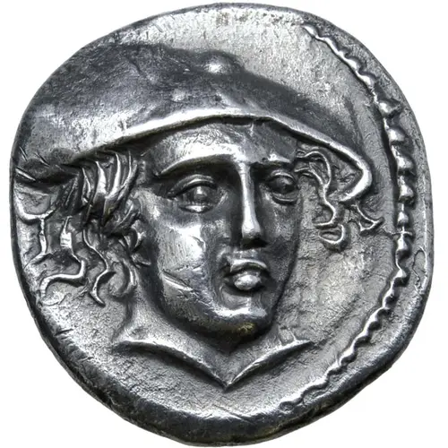 | Aversbeschreibung | Head of Hermes facing slightly right, wearing petasos. |