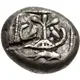 | Reverse description | Paradise flower/Phoenician palmette; within the volutes, two birds vis-à-vis; below, dolphin right; all in dotted square within incuse square. |