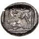 | توضیحات پشت سکه | Forepart of lion right facing lion hind facing left; below, bearded male face and neck downward; all in dotted square within incuse square. |