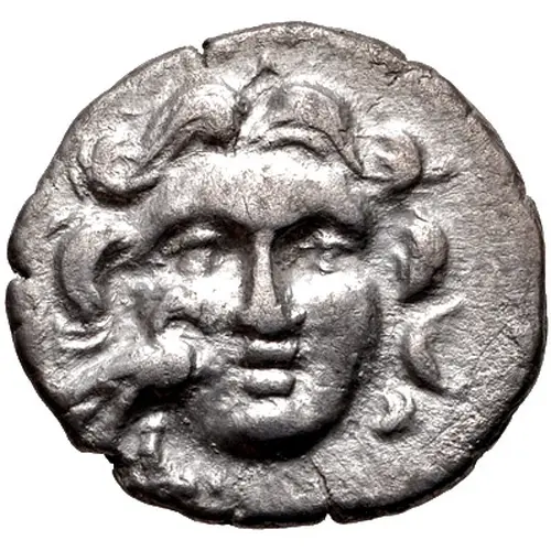 | Descripción del anverso | Head of Helios facing with an eagle at his left cheek |
