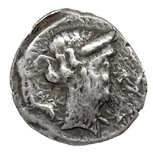 | Obverse description | Female head crowned with ears of wheat right, three dolphins around. |