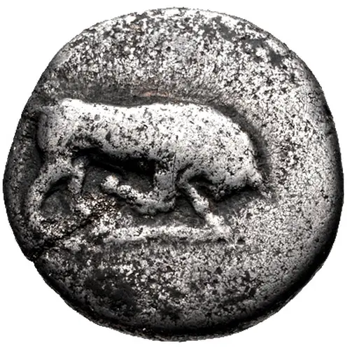 | Obverse description | Bull butting towards the right |