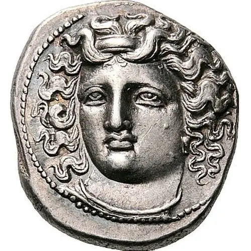 | توضیحات روی سکه | Head of the nymph Larissa facing, turned slightly to the left, wearing ampyx, pendant earring, and simple necklace |
