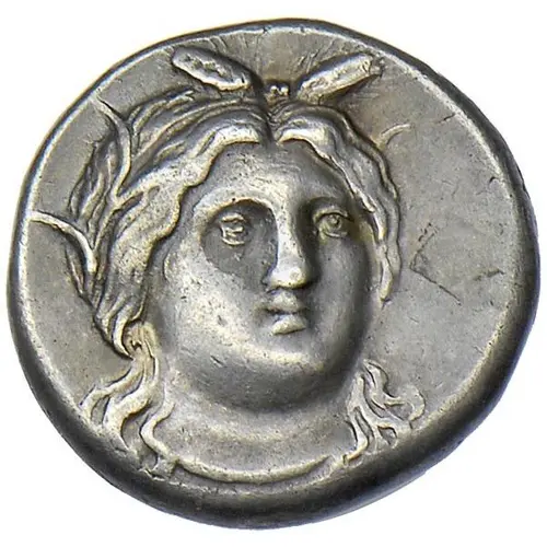 | Description de l’avers | Head of Demeter or Kore (Persephone) facing slightly right, wearing grain wreath. |