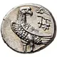 | Reverse description | Eagle standing left, head turned back to right; above, kerykeion and bunch of grapes on vine with leaf. |