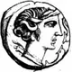 | Obverse description | Female head (based on Persephone-Arethusa) right, wearing wreath of wheat; two dolphins to the right, one dolphin to the left. |