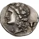 | Description du revers | Wreathed head of Dionysos left; kantharos to right. |