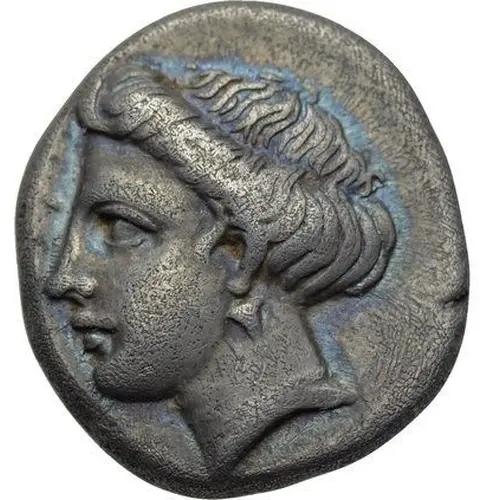 | Opis awersu | Head of Nymph Chalkis left |