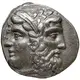 | 表面の説明 | Janiform head of a laureate male and diademed female. |
