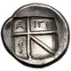 توضیحات پشت سکه Incuse square divided by skew-pattern into five compartments; in lower left section, dolphin upward.