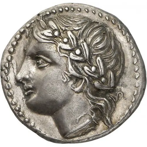 | توضیحات روی سکه | Head of Apollo facing to left, wearing a laurel-wreath. |