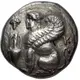 | Obverse description | Sphinx seated left; to left, grape bunch above amphora; K to right. |