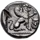 | Описание реверса | Winged lion seated right, raising left forepaw; Aramaic B above; to right, facing head of Bes; all in dotted square within incuse square. |