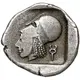 | Reverse description | Head of Athena in Corinthian helmet, left; caduceus behind. All within an incuse square. |