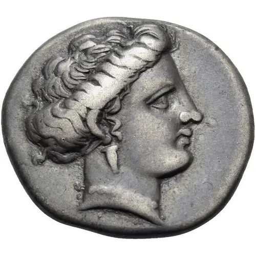 | Opis awersu | Head of the nymph Chalkis to right. |