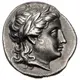| Aversbeschreibung | Laureate head of Apollo right; dotted border. |