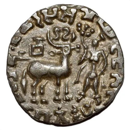| Obverse description | Lakshmi standing next to deer, square vase and Naga symbol above, Brahmi legend around. |