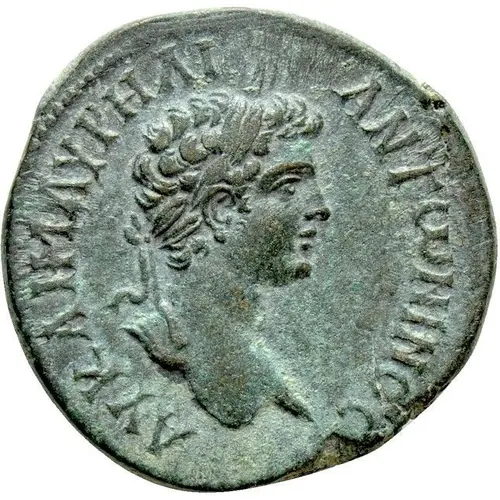 | نوشتههای روی سکه | AY KAI M AYRHLI ANTΩNINOC |