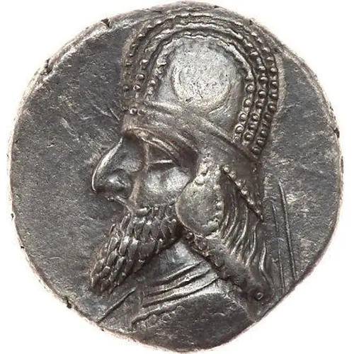 | Obverse description | Bearded bust of Dareios II left, wearing diadem and Parthian-style tiara with crescent and three rows of pellets. |