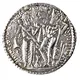 | Reverse description | Same king standing in adoration before Buddha on throne. King in Sasanian loose garment, with sword at left and dagger at right; right hand pointing towards small fire-altar in shape of hour-glass; left hand raised in adoration. God on throne, head and body in profile, knees parted, upper part of body shemms naked;long sceptre in left, rigth hand on arm-rest of throne. Throne seen partly in profile; according to Hellenistic prospective. Above the altar name of mint town. |