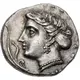 | Aversbeschreibung | Head of nymph left, hair in sakkos; aphlaston to left. |