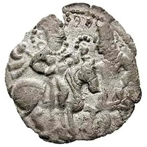 | Obverse description | King on horseback right, a retainer standing left prepares to crown him |