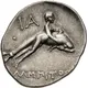 | Descrição do reverso | Boy holding on to dolphin swimming right; below, magistrate name. |