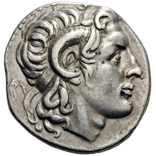 | Description de l’avers | Diademed head of Alexander the Great to right with horn of Ammon over his ear |