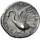 | Reverse description | Swan standing left, wings spread; MANΔPONA[Ξ] to left, KΛ-A below. |