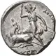 | Описание реверса | Artemis advancing left, striking stag lying left with spear held in her right hand and holding bow in her left. |