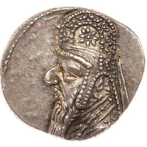 | Popis líce | Bust of Mithridates II left, wearing tiara, neck torque ends in sea-horse. |