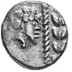 | Obverse description | Laurel wreath running upwards between two rows of pearls. Male head right with curly hear in the left field. |