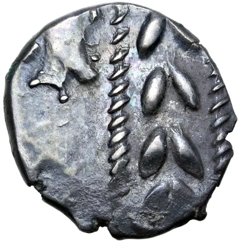| توضیحات روی سکه | Laurel wreath downwards between two pearl-strands; in left field, bearded head to right. |