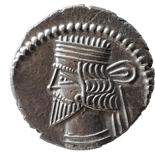 ΒΑΣΙΛΕΩΣ ΒΑΣΙΛΕΩΝ ΑΡΣΑΚΟΥ ΕΥΕΡΓΕΤΟΥ ΔΙΚΑΙΟΥ ΕΠΙΦΑΝΟΥΣ ΦΙΛΕΛΛΗΝΟΣ (Translation: Coin of Arsaces the king of kings, the benefactor, the just, the illustrious, friend of the Greeks.) |