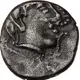 | Description de l’avers | Small head to right, surrounded by beaded cords, stylized hair. |
