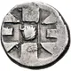 | Reverse description | Design of raised and sunk squares and triangles; in the center, cockle shell. |