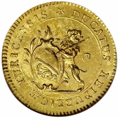Obverse description Zurich Shield with a palm branch at left, supported by rampant lion at right