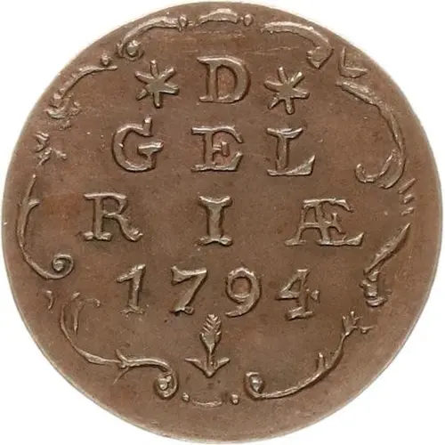 | Obverse lettering | ✿ D ✿ GEL RI · AE 1794 (Translation: Duchy of Gelderland) |