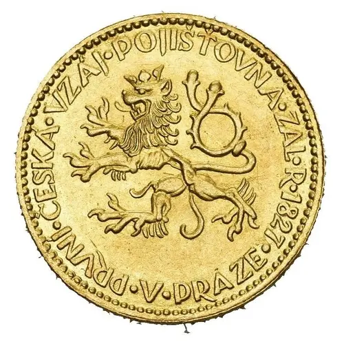 Czech Lion facing left with lettering around |