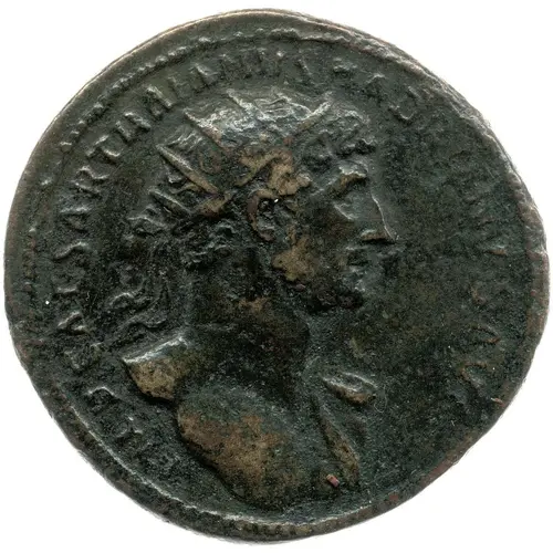 | Ön yüz lejandı | IMP CAESAR TRAIANVS HADRIANVS AVG (Translation: Imperator Caesar Traianus Hadrianus Augustus. Supreme commander (Imperator), Caesar, Trajan Hadrian, emperor (Augustus).) |