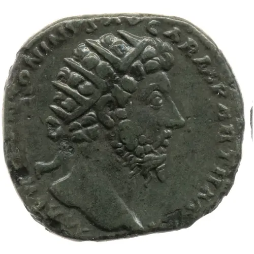| Opis líce | M AVREL ANTONINVS AVG ARM PARTH (Translation: Marcus Aurelius Antoninus Augustus, Armeniacus, Parthicus. Marcus Aurelius Antoninus emperor (Augustus), conqueror of the Armenians, conqueror of the Parthians.) |