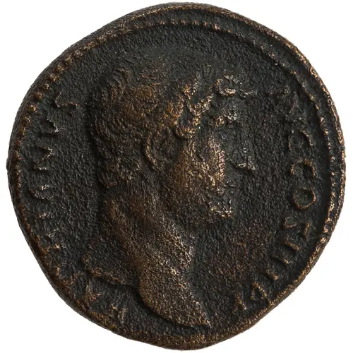 | Averslegende | HADRIANVS AVG COS III P P (Translation: Hadrianus Augustus, Consul Tertium, Pater Patriae. Hadrian, emperor (Augustus), consul for the third time, father of the nation.) |
