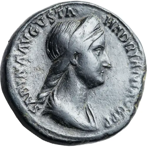 | 表面の銘文 | SABINA AVGVSTA HADRIANI AVG P P (Translation: Sabina Augusta, Hadriani Augusti, Patri Patriae. [Vibia] Sabina, the venerable, [consort] of emperor (Augustus) Hadrian, father of the nation.) |
