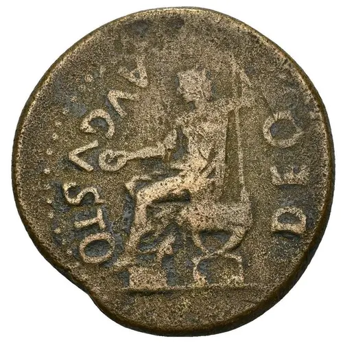 | Obverse description | Divus Augustus seated, left, on curule chair, holding patera with right hand and long sceptre with left. |