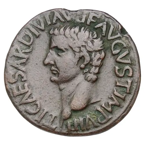 TI CAESAR DIVI AVG F AVGVST IMP VIII (Translation: Tiberius Caesar, son of the divine Augustus, Augustus, commander for the eighth time) |