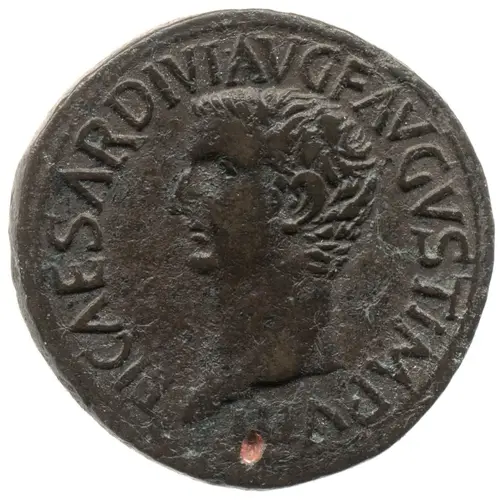 TI CAESAR DIVI AVG F AVGVST IMP VIII (Translation: Tiberius Caesar, son of the divine Augustus, Augustus, commander for the eighth time) |